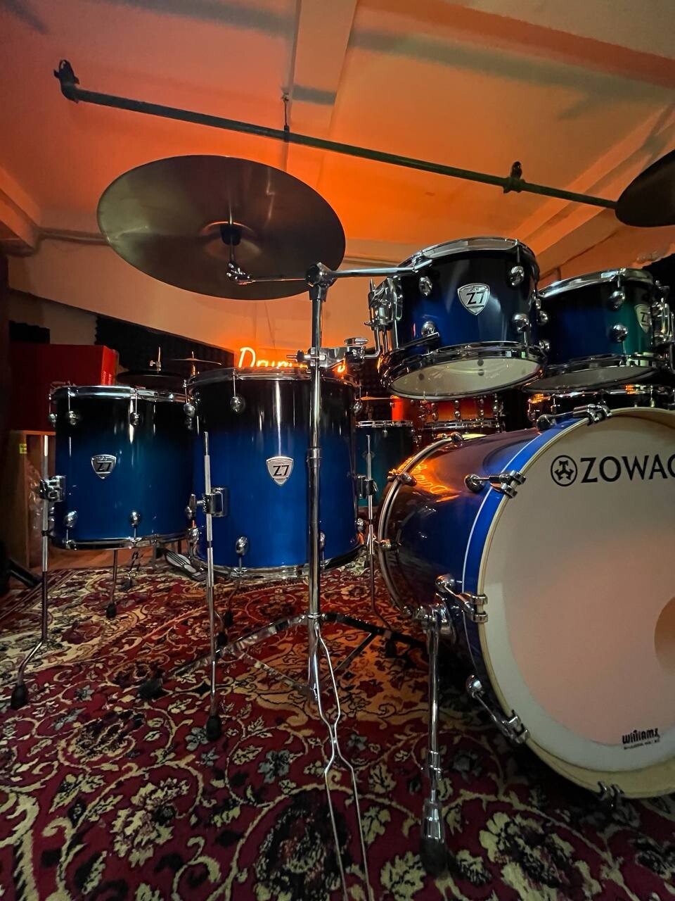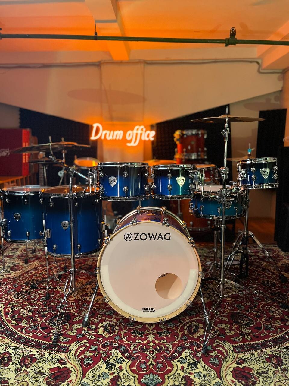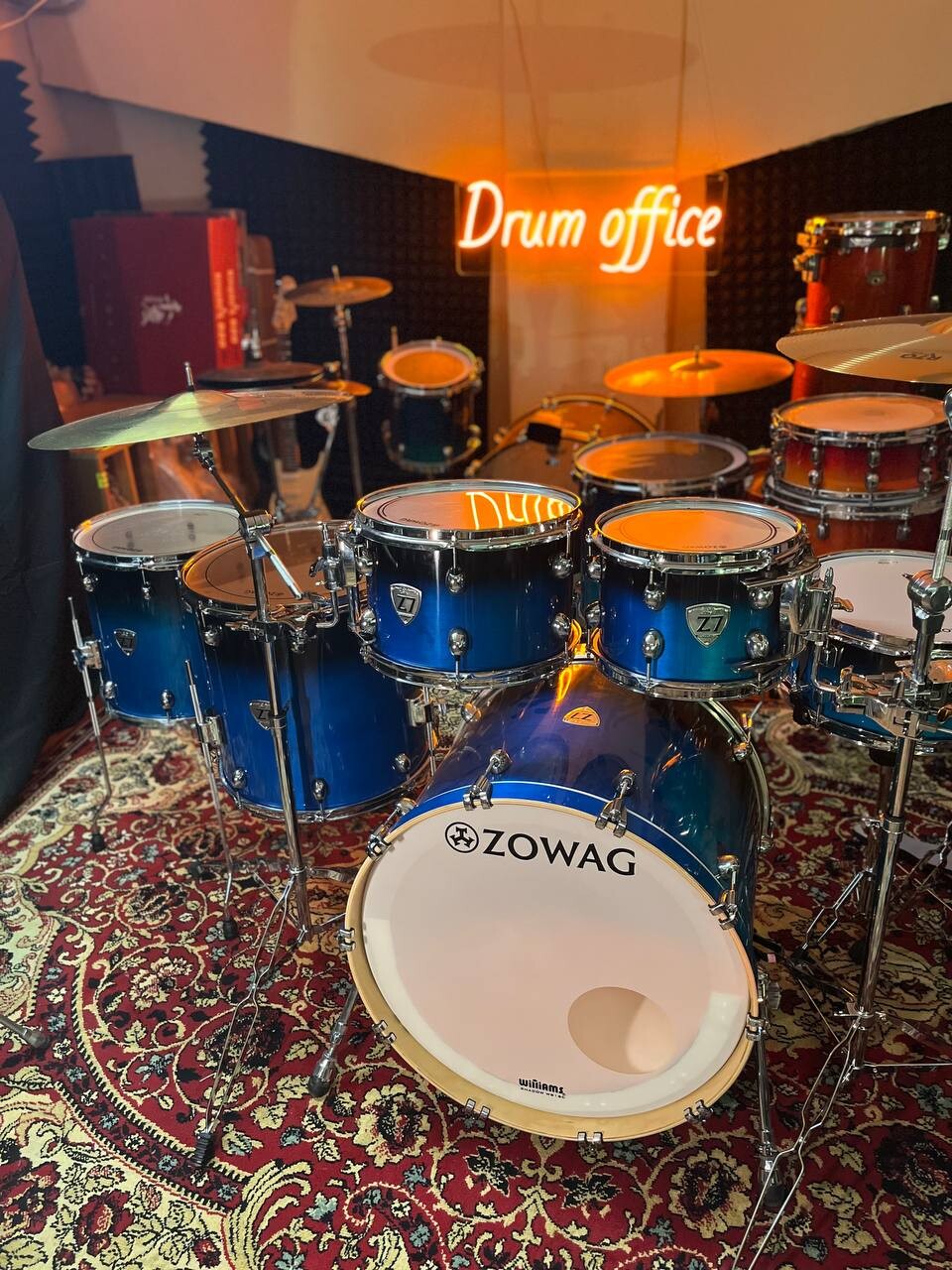 7 барабанов, клён, лак, тарелки, стойки, 2 напольных тома, флагман Zowag Z7