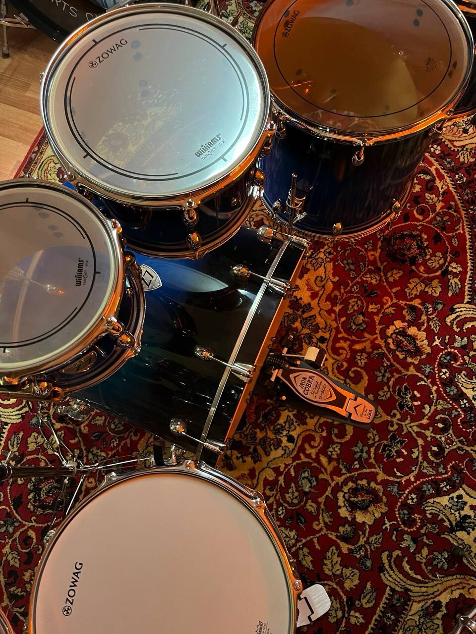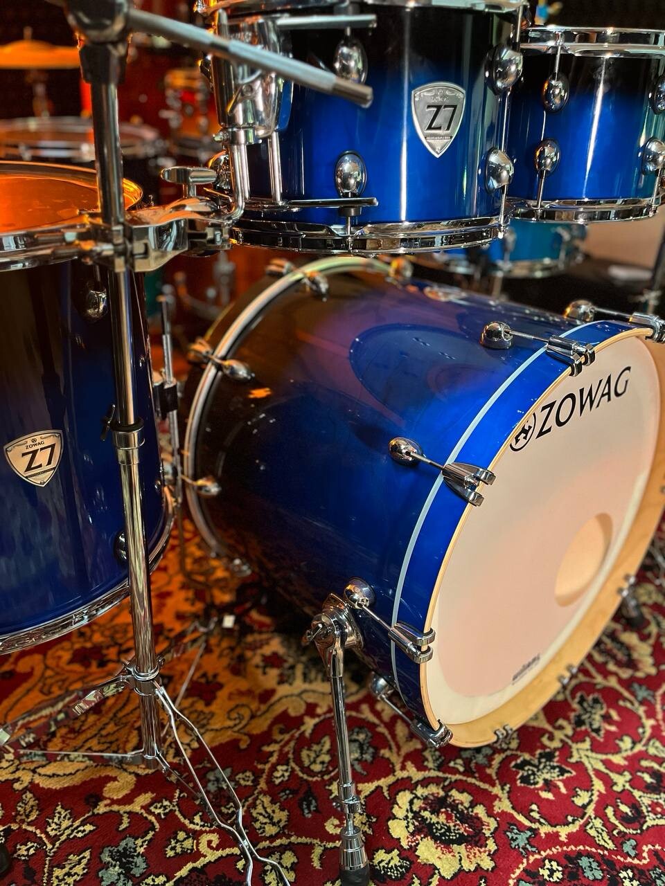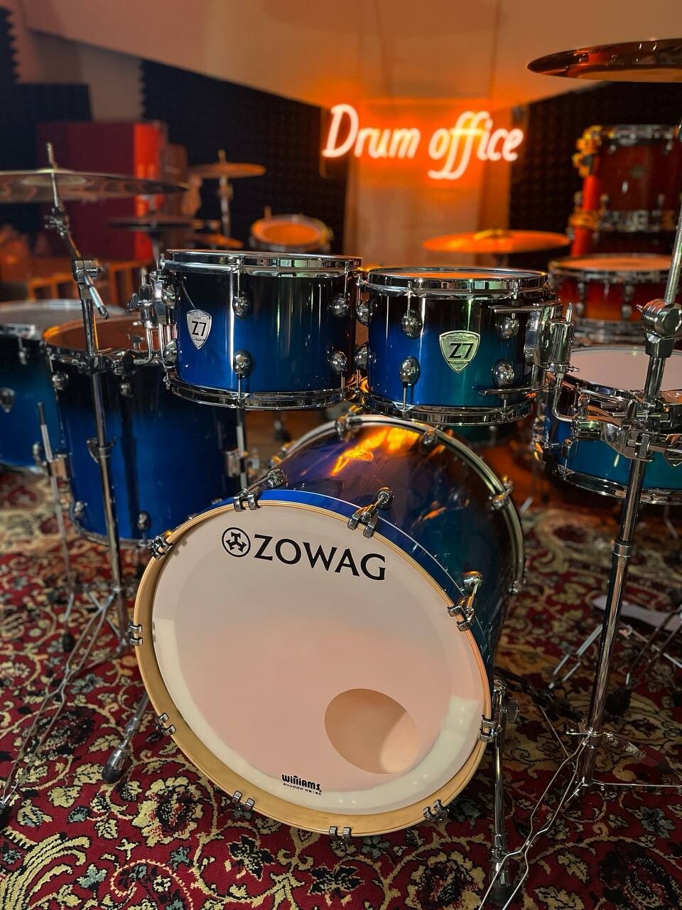 7 барабанов, клён, лак, тарелки, стойки, 2 напольных тома, флагман Zowag Z7